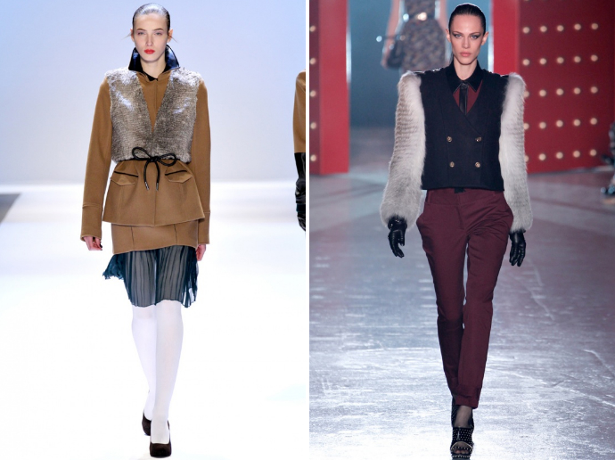 Осенне-зимняя коллекция Jason Wu отличается отсутствием привычной воздушности и легкости, на этот раз героиней его линии стала по-настоящему сильная и волевая женщина. Для создания соответствующих ей вещей Джейсон Ву переработал мужественный стиль милитари, придав ему невероятной элегантности, добавил по-военному строгую линию плеч даже в вечерние платья, а также включил в некоторые вещи восточные мотивы. Марка Peter Som решила погнаться сразу за несколькими зайцами: продлить жизнь характерной для летнего сезона тенденции белого цвета, показать запоминающиеся принты, выполнить широкоплечий и в то же время женственный силуэт, задействовать при всем этом кожу, шерсть и глянцевитые ткани, блестящие, как оберточная бумага. Эта "гонка" завершилась для Peter Som успешно — все задачи выполнены, несмотря на их многочисленность. У Helmut Lang получилась менее разнообразная и куда более сдержанная коллекция с преобладанием черного цвета, а бренд Rag&Bone представил свой взгляд на тенденцию многослойности и многофактурности. Yigal Azrouel удалось облечь серьезные ткани вроде кожи, шерсти и меха в мягкие, правильные формы с прямым силуэтом, что позволяет считать коллекцию более повседневной. А вот Шарлотта Ронсон соединила контрасты: прозрачные шелковые юбки и платья — с грубыми свитерами, кожей, — а также показала идеальную сочетаемость фактур.