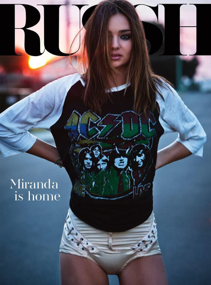 Фотограф Хью Липпе запечатлел супермодель Миранду Керр для обложки октябрьско-ноябрьского номера журнала Russh No.48. Миранада, в майке с надписью "AC/DC", с густо подведенными черным карандашом глазами и растрепанными волосами, выглядит как настоящая поклонница рок-н-ролла. Этот образ, по моему мнению, ей очень подходит.